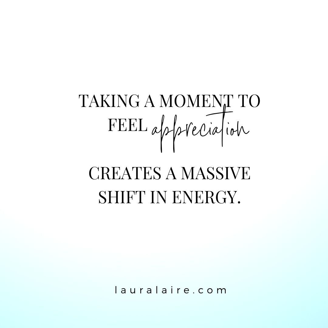 [ctt_hbox link=”qu6cw” via=”no” ]Taking a moment to feel appreciation creates a massive shift in energy. [/ctt_hbox]